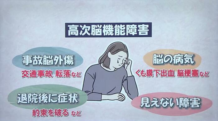 事故や病気で脳に損傷を受け、認知機能などが低下する高次脳機能障害。命が助かり退院した後も、注意障害や記憶障害といった様々な障害と向き合うことになる。