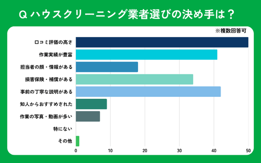 エアコンクリーニング業者選びで外せない条件、最終的な決め手になるのはどこですか?(複数回答可能)