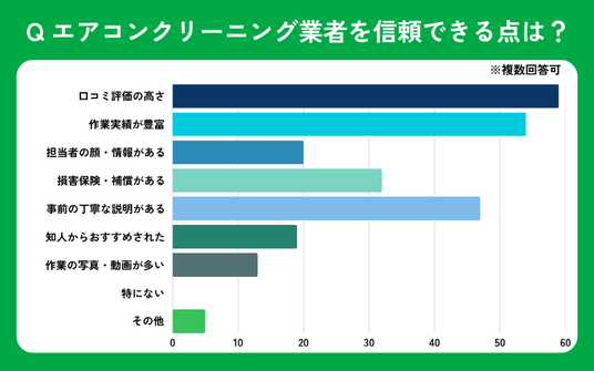 エアコンクリーニング業者選びで、信頼できると感じたポイントはどこですか?(複数回答可能)
