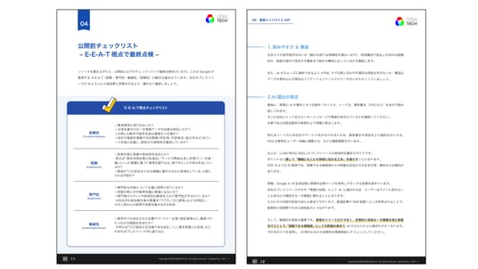 信頼性、専門性、権威性などを担保する「E-E-A-T」の観点から、公開前に確認すべき項目を網羅したチェックリストを提供します。