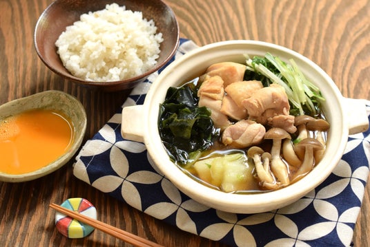 PFC(たんぱく質・脂質・炭水化物)のバランスを黄金比率で摂れる鍋です。日々の献立で意識するのが難しいPFCのバランスですが、鍋なら具材のバランスを意識するだけで簡単にバランスをとることができます。この鍋では、鶏肉や卵でたんぱく質、ごはんで炭水化物を補給しつつ、全体的に脂質を抑えているため、理想的なPFCバランスを実現しています。