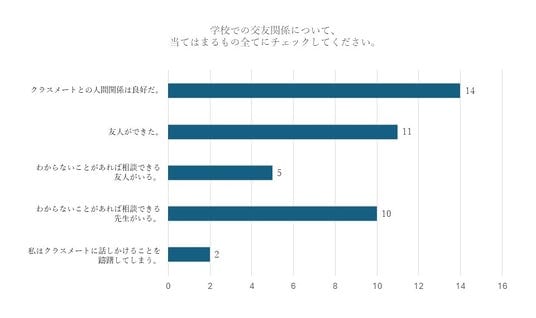 調査では、学校内で91%、学校外で95%の回答者が人間関係を築けていると回答しました