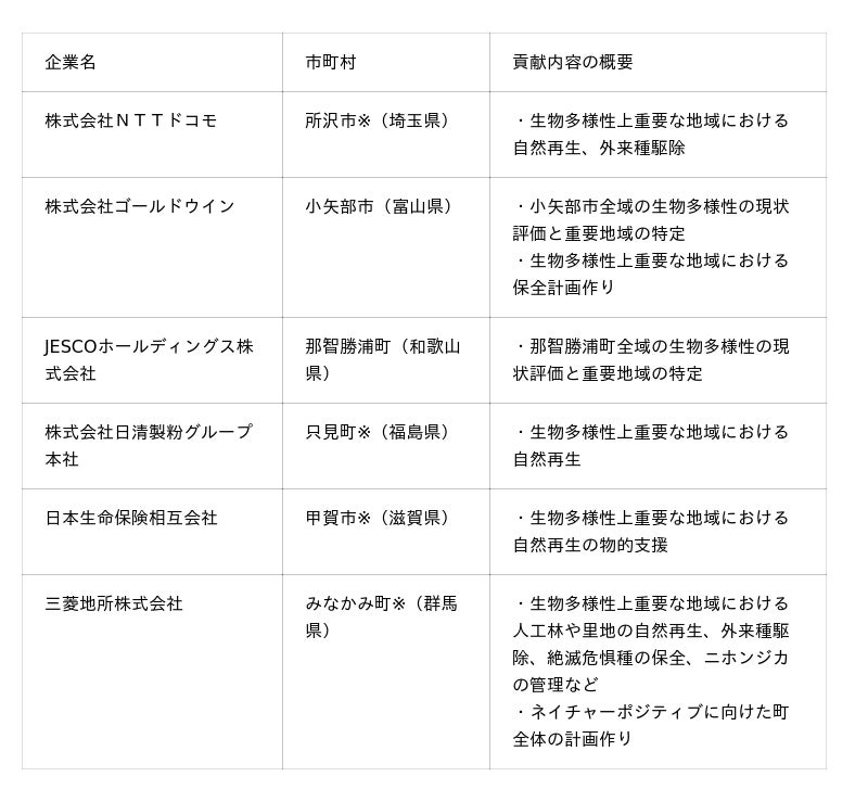 ●ネイチャーポジティブに向けた6社の企業の取組を、世界目標や市町村の設定した目標に照らして評価し、2024年度の貢献証書として発行