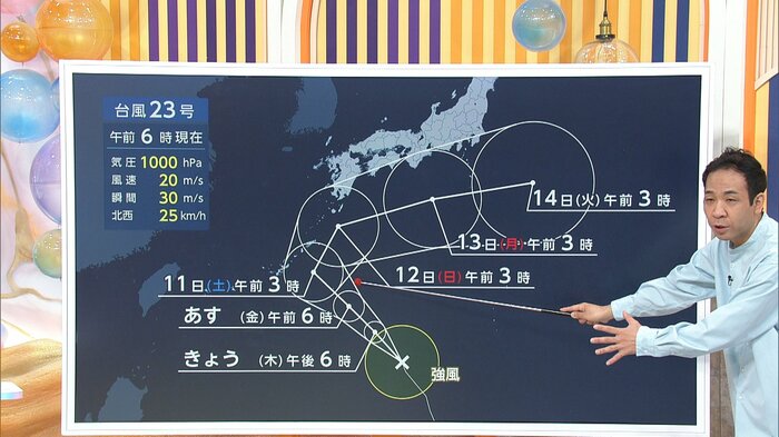 今回も内側を通っていますから、沖縄周辺の海が30℃くらい、ものすごく暖められています。台風23号は予想より発達する可能性が出ています。沖縄の皆さんは11日(土)気をつけていただきたいと思います。