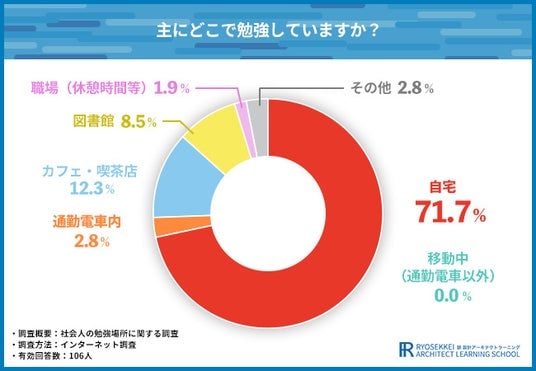 現代の社会人の勉強場所、71.7%が『自宅』で圧倒的多数