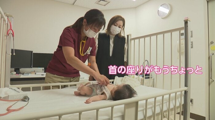 嶋尾医師は「小さく生まれても1歳〜3歳までの間にサイズが追いついてくることが多い」と説明する。月に一度の診察では、蘭ちゃんの首の座りを確認するなど、発達のフォローアップが行われている。
