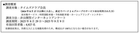 ※ 本アンケートは、駐車場やカーシェアリング、レンタカー等のクルマに関わるサービスを利用した方々を対象としたものです。