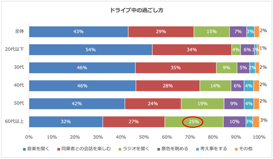 ~ドライブ中は音楽や会話を楽しむ人が多く、年代が上がるほどラジオ派が増加~