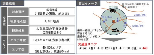 - 大型車両の交通量データを用いて首都圏の物流施設需要を定量的に分析