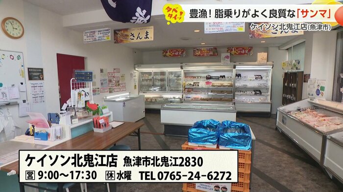 富山県魚津市にある「ケイソン北鬼江店」。サンマ漁船「第八珠の浦丸」など3隻の漁船で漁をしている漁業組合の直営店だ。店頭には新鮮なサンマが並び、多くの人が買い求める姿が見られた。