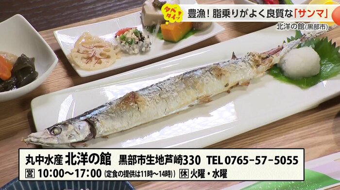 北洋の館では11時から14時までさんまの塩焼きをはじめとした定食を食べることができる。この時期はさんまの塩焼き定食を目当てに店を訪れる人も多い。旬の味覚「サンマ」を存分に堪能できる季節がやってきた。