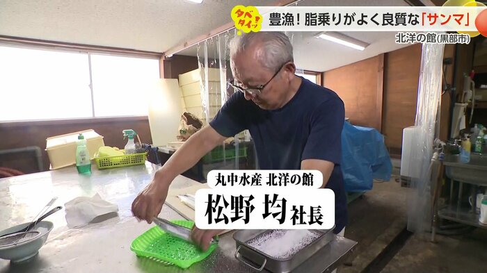黒部市の生地鼻灯台そばにある「北洋の館」では、サンマの塩焼き定食が人気だ。丸中水産の松野均社長が焼くサンマは、いくつかのポイントがある。