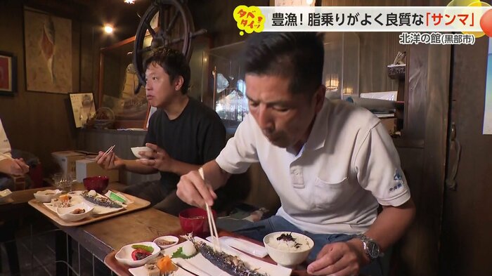 昼時には「さんまの塩焼き定食」の注文が次々と入る。食べた客からは「思ったよりサンマが大きくて、ふっくらしている。はじめて北洋の館に来たんですけど、美味しいです」「サンマの焼き塩加減が違う。これ美味いよ。脂も多くて今年のサンマは最高だよ」との声が聞かれた。