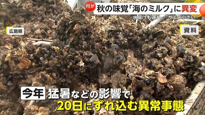 日本最大の産地である広島県では、養殖カキの水揚げが例年であれば10月1日から始まるが、2025年は猛暑などの影響で20日にずれ込む異常事態になっている。