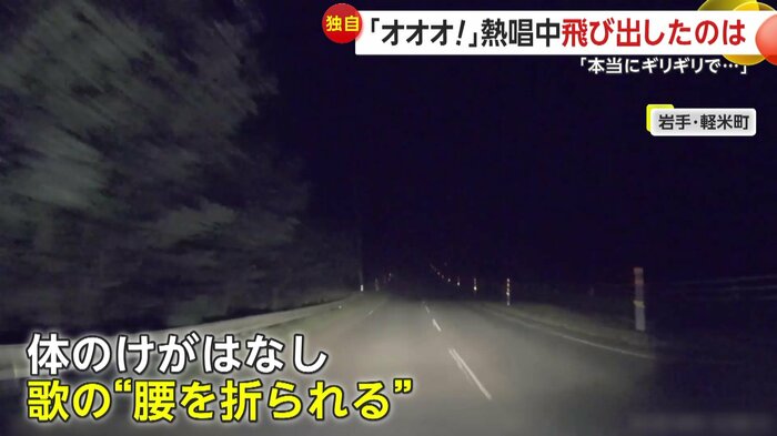 岩手・軽米町の夜道で、車の前に突然シカが飛び出してきた瞬間をカメラが捉えた。運転していた男性は眠気覚ましに熱唱しながら運転していたが、目前に現れたシカに驚愕。間一髪で回避し、幸いにもけがはなかった。