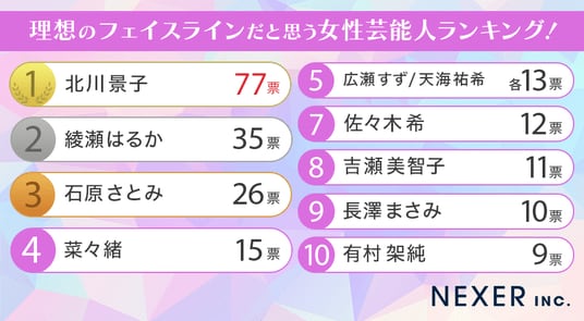 株式会社NEXER・理想のフェイスラインだと思う女性芸能人に関する調査