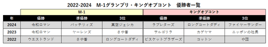 2022-2024 M-1グランプリ・キングオブコント 優勝者一覧表画像