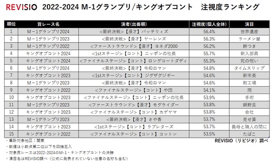 2022-2024 M-1グランプリ・キングオブコント 注目度ランキング画像