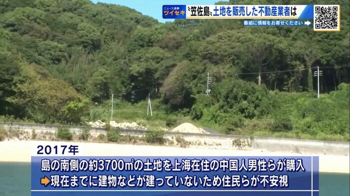 山口県の離島・笠佐島で、中国人が取得した土地をめぐり不安の声が広がっている。
