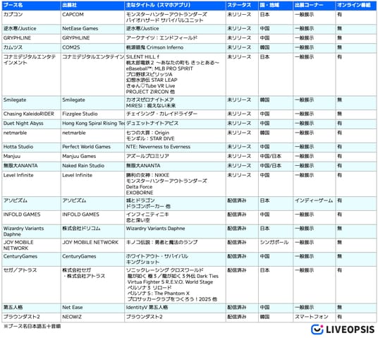 本レポートは、スパイスマートが提供する運営ソリューション『LIVEOPSIS』にて配信中。今後もスパイスマートでは、東京ゲームショウをはじめとして国内外の大型ゲームイベントでの出展傾向や日本IP展開を今後も継続的に調査・分析していきます。