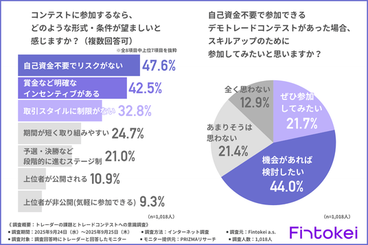 Fintokei(フィントケイ)は、トレーダーを対象に、トレーダーの課題とトレードコンテストへの意識調査を行いました。
