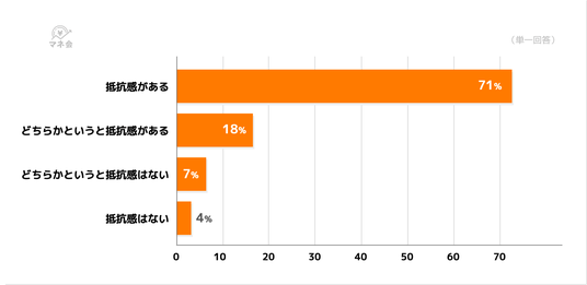 調査では「抵抗感がある」と回答した人が71%、「どちらかというと抵抗感がある」が18%となり、約9割が慎重な姿勢を示しました。