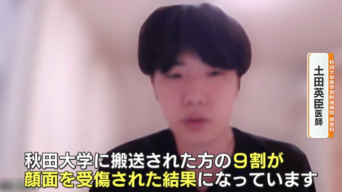 秋田大学に搬送された方の9割が顔面を受傷された結果になっています。