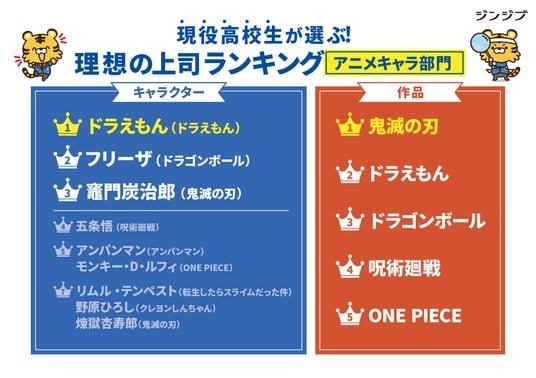 【現役高校生が選ぶ理想の上司ランキング アニメキャラ部門】