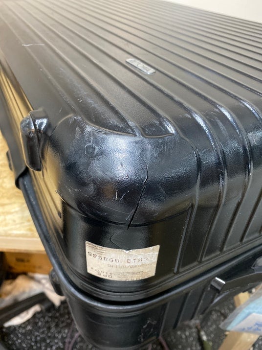 リモワは堅牢ですが、海外旅行で乱暴に扱われるとボディに凹みや亀裂が生じることがあります。多くの場合、旅行保険による補償が受けられます。特にポリカーボネートボディにおいて亀裂が多い箇所は、伸縮ハンドル周りとハウジング周りになります。