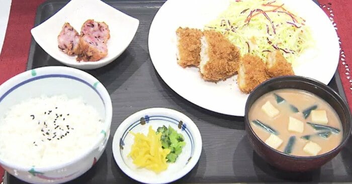 一般に出回ることが少ない石巻産の深海魚「ノロンボ」のフライや「タコの皮」を使った揚げかまぼこを添えた「もったいない定食」。