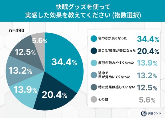・快眠グッズを使って「寝つきが良くなった」と実感した人は3人に1人(34.4%)