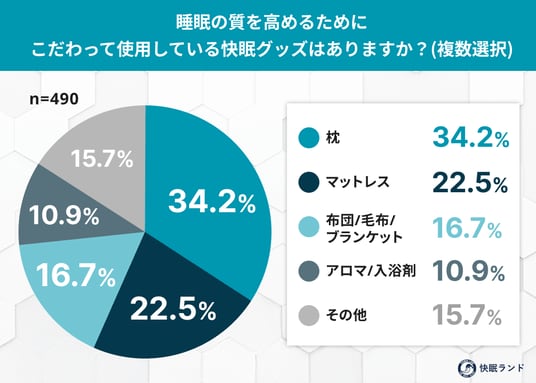 ・睡眠の質を高めるためにこだわって使っているアイテムも「枕」(34.2%)がトップ