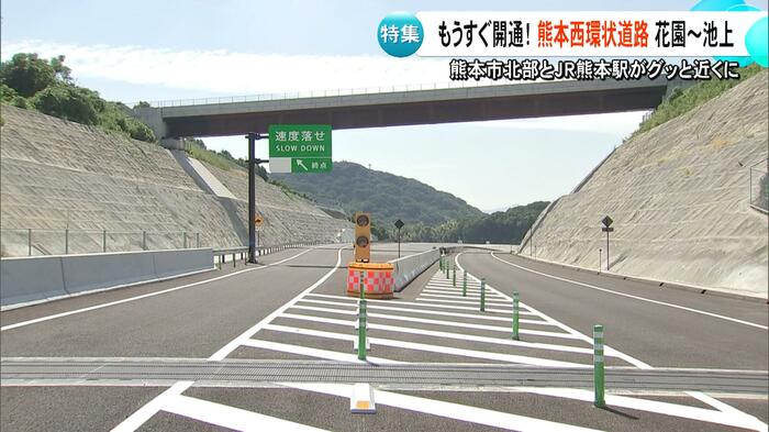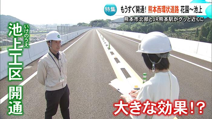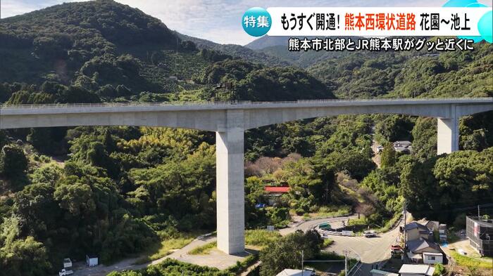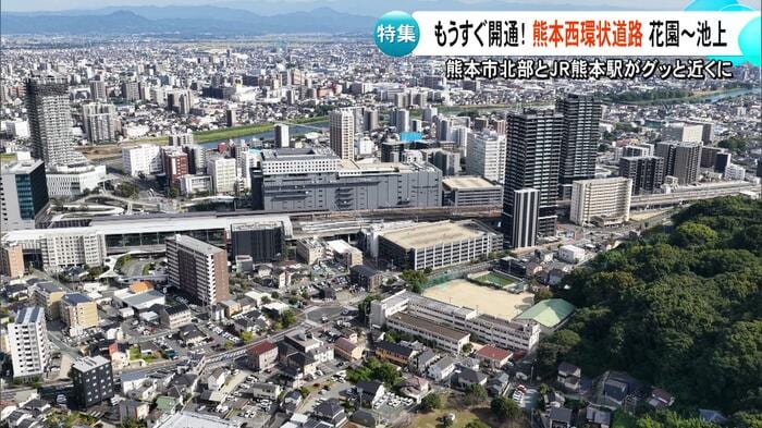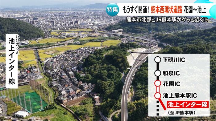 通行無料の自動車専用道路『熊本西環状道路』について、このうちの花園から池上町まで約4.6キロ、『池上工区』と呼ばれる区間が開通予定で、総延長約12キロのうちの8.7キロが開通することになる。全線開通はまだ先ですが、熊本市は今回の池上工区の開通によって、ある大きな効果が出るとアピールしている。10月19日の開通を前にこの新しい道路について地上から、上空から取材した。