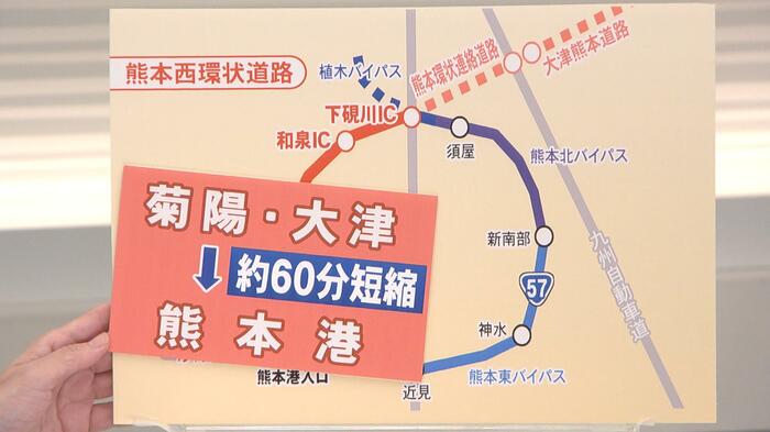 そうなると、菊陽・大津方面と新たにつながり、物流の拠点である熊本港までの所要時間が約60分短縮されると見込まれている。