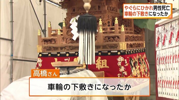 当時、高橋さんを含め30人ほどでやぐらをひいていて、高橋さんは走ってやぐらを追い越した際に転倒し車輪の下敷きになったとみられます。