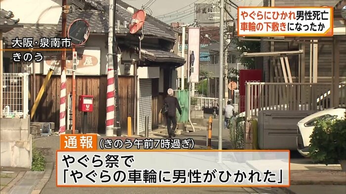 11日朝に大阪・泉南市で開催されていた祭りで、26歳の男性が巡行していたやぐらにひかれ、死亡しました。