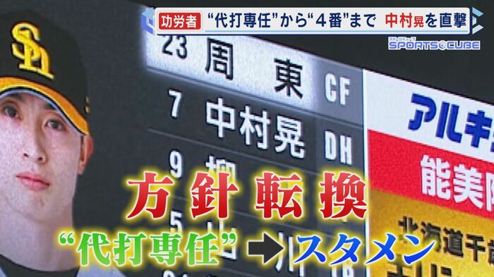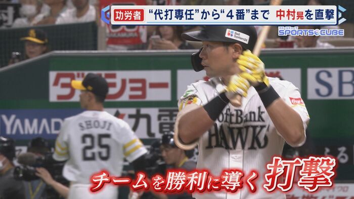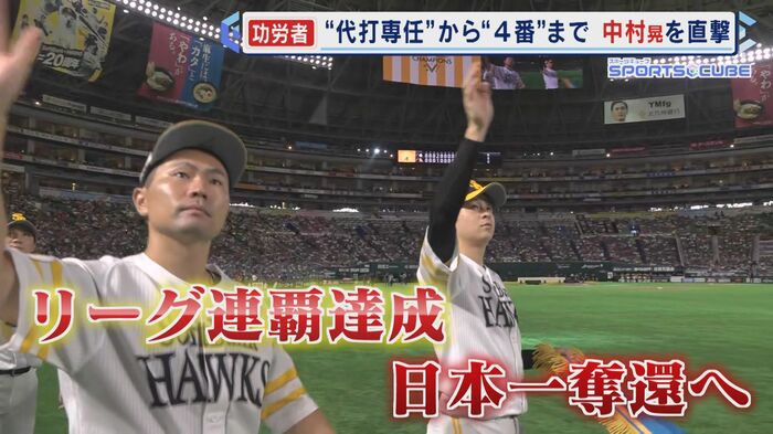 開幕前に小久保裕紀監督(54)から“代打専任”を告げられた中村選手。35歳の選手として訪れた岐路だった。しかし代打専任だったはずが、主力選手の相次ぐ離脱で一転、シーズン開幕直後からスターティングメンバーに。4番打者としてもチームを支え、最後までシーズンを完走。ホークスのリーグ連覇に大きく貢献した。