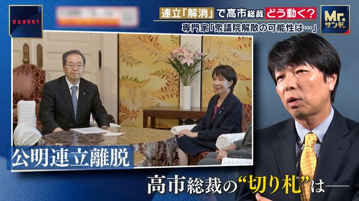 となれば、高市新総裁が総理となる可能性が高まるが、政治ジャーナリスト・青山氏によると、公明党が連立離脱した今の難局を乗り切る、切り札があるという。