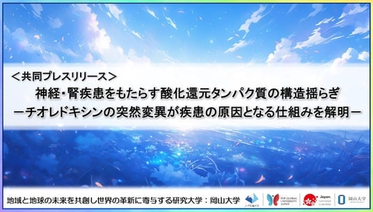 理化学研究所(理研)放射光科学研究センター生物系ビームライン基盤グループの竹下浩平研究員、岡山大学学術研究院教育学域の大守伊織教授、日本原子力研究開発機構物質科学研究センター強相関材料物性研究グループの中川洋研究主幹、総合科学研究機構中性子科学センターの岡崎伸生副主任技師らの共同研究グループは、体内で酸化還元反応の調節に重要な働きを担うタンパク質「チオレドキシン」の突然変異が脳神経変性や慢性腎臓病の原因となる仕組みを、機能解析とX線結晶構造解析、分子動力学シミュレーションを駆使し、初めて解明しました。
