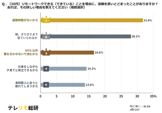【30代】リモートワークできる(できている)ことを理由に、退職を思いとどまったことがありますか? あれば、その詳しい理由を教えてください(複数選択)結果グラフ