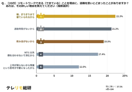 【20代】リモートワークできる(できている)ことを理由に、退職を思いとどまったことがありますか? あれば、その詳しい理由を教えてください(複数選択)結果グラフ