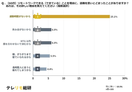 【60代】リモートワークできる(できている)ことを理由に、退職を思いとどまったことがありますか? あれば、その詳しい理由を教えてください(複数選択)結果グラフ