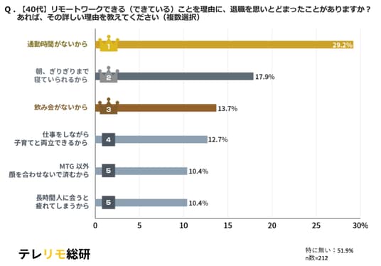 【40代】リモートワークできる(できている)ことを理由に、退職を思いとどまったことがありますか? あれば、その詳しい理由を教えてください(複数選択)結果グラフ