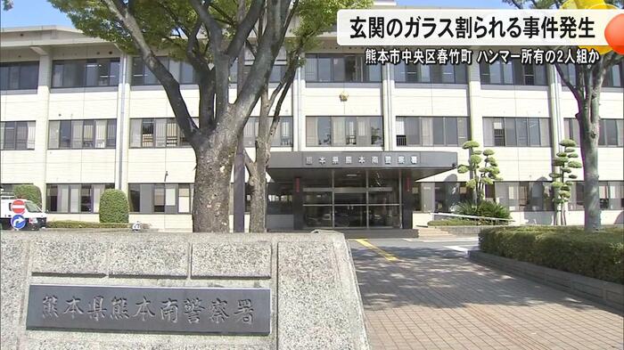 10月11日昼に熊本市中央区の住宅で玄関のガラス部分が割られる事件が発生した。近くではハンマーのようなものを持った不審な人物の目撃情報があり、警察が注意を呼びかけている。