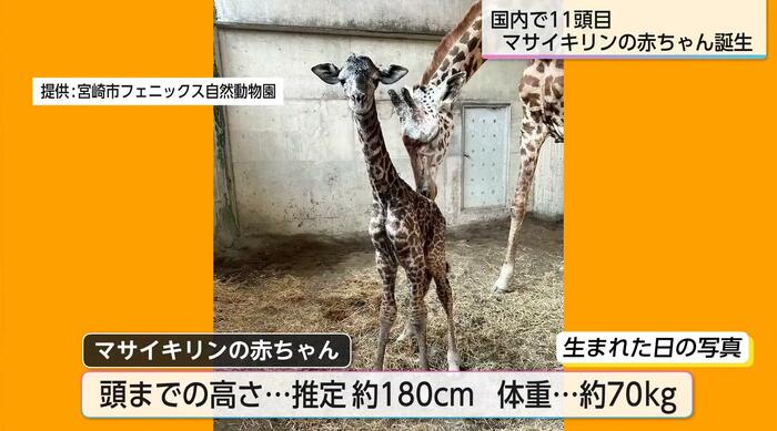 宮崎市フェニックス自然動物園で10月5日、マサイキリンの「コユメ」と「トウマ」の間に第4子となるオスの赤ちゃんが生まれた。