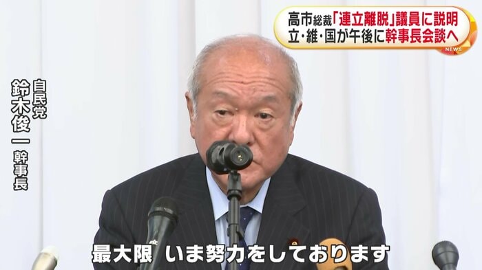 また、鈴木幹事長は、13日「基本政策が一致する政党はある。政治の安定を取り戻し、内外の課題に応えていく体制を作りたい」と述べた。