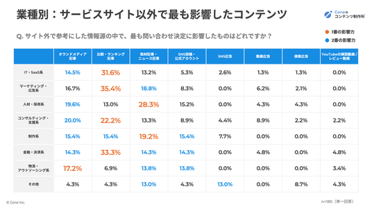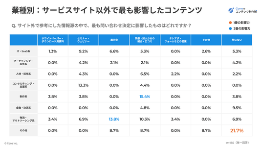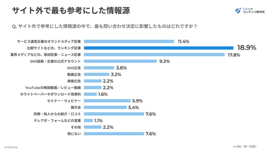 株式会社Cone(本社:大阪府大阪市、代表取締役:佐藤 立樹)は、BtoBサービスの問い合わせや資料請求を決定づけたサイト内コンテンツとサイト外の情報源に関する独自調査を実施しました。