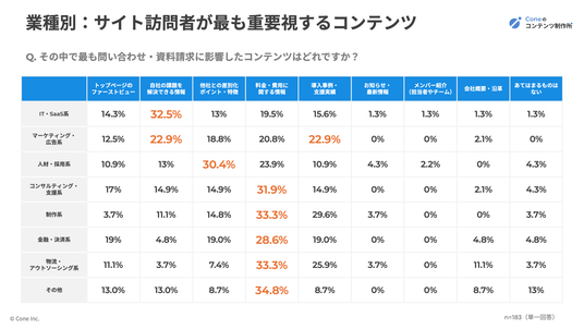 業種別で見ると、重要視するコンテンツに違いがあることが判明しました。