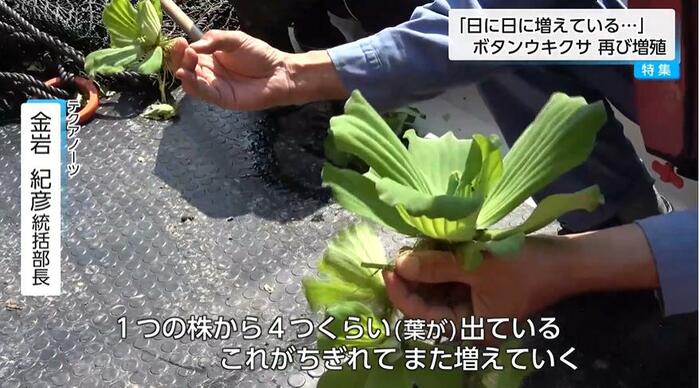 作業を急ぐ理由は、その強い繁殖力にある。株式会社テクアノーツの金岩紀彦統括部長は「ひとつの株から4つくらい(葉が)出ている。これがちぎれてまた増えていく。もう追いかけっこです」と、いたちごっこの現状を語った。