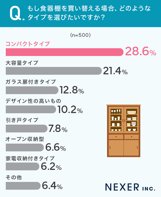 ■28.6%が、もし食器棚を買い替える場合、選びたいのは「コンパクトタイプ」